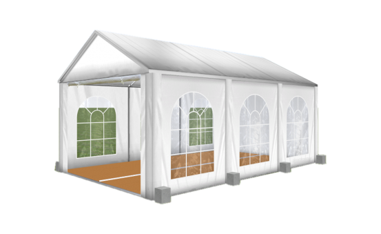 Stabiles Partyzelt für Deine Feier, es schützt Dich und Deine Gäste vor Regen und Sonne. Die 6 Seitenwände können alle einzeln eingehängt werden. Hierdurch kannst Du das Zelt mit Wänden und Eingängen individuell gestalten. Es lässt sich auch bei schönem Wetter als reines Sonnensegel aufbauen. Die Seitenwände sind mit Sichtfenstern. Giebelwänden lassen sich durch 2 Reißverschlüsse öffnen und als Ein- und Ausgang nutzen. Die minimale Innenhöhe beträgt 2,00 m, die maximale 3,50 m. Das Zelt ist für ca. 20-50 Personen geeignet (je nach Art der Nutzung).